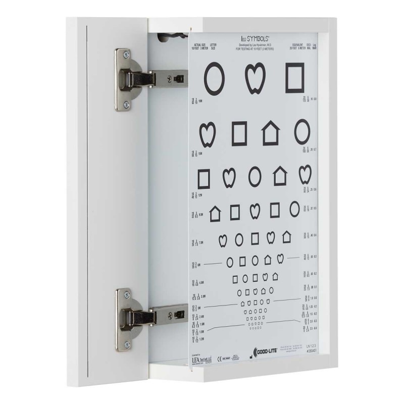 There is a door on the side making it easy to replace the visual acuity chart. There are flexible mounting options for the lightbox.