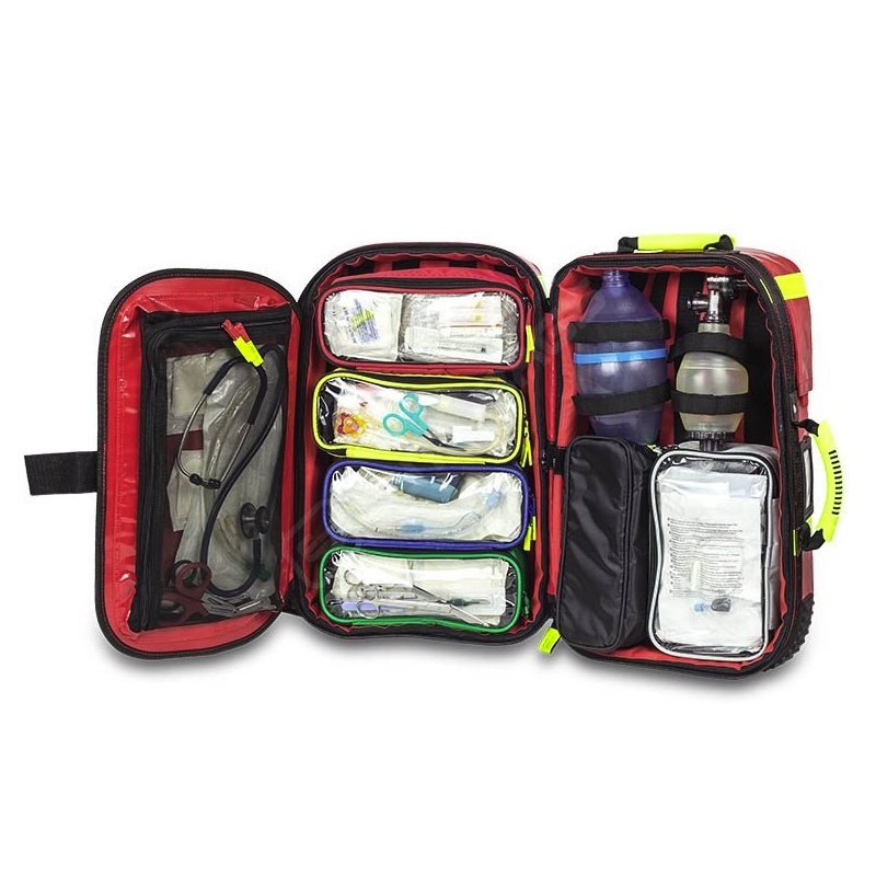 Denne store akuttrugen er en fold ut pose, noe som betyr at brukeren raskt kan danne seg et overblikk over alt innholdet i bagen.
