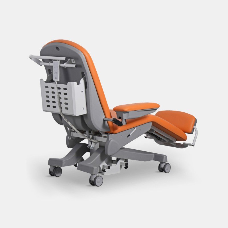 Multifunksjonell behandlingsstol for lengre behandlinger som dialyse, kjemoterapi, bloddonasjon og pasientundersøkelser