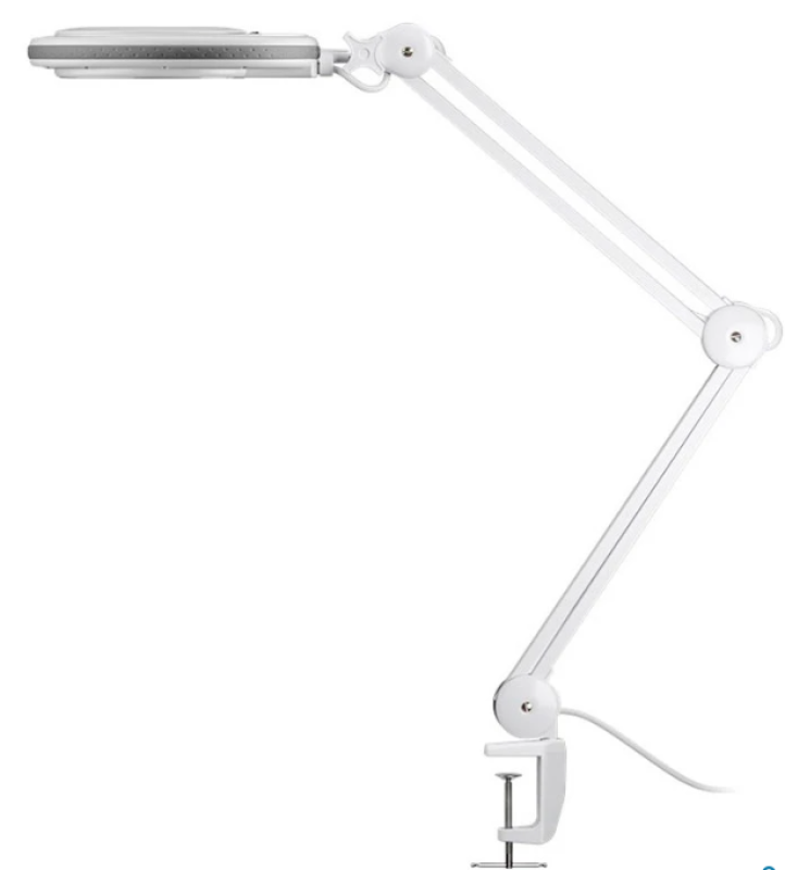 LED förstoringslampa med 127 mm kristallglaslins, 1,75x förstoring och 3 dioptrier. Har en flexibel arm med en räckvidd på 700 mm och ett 360° roterbart huvud. Levereras med bordsklämma för upp till 60 mm.